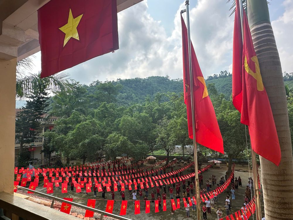 Ngay từ đầu năm học, nhà trường đã đẩy mạnh công tác tuyên truyền thông qua việc trang trí khuôn viên trường học với hệ thống băng rôn, khẩu hiệu, cờ Tổ quốc, cờ Đảng, tạo nên một không gian rực rỡ sắc đỏ, cổ vũ tinh thần thi đua học tập và rèn luyện trong học sinh.